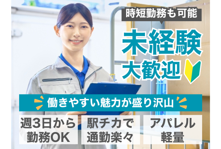 【未経験OK!フルタイム大歓迎!】週3~時短勤務も相談可能◎駅チカ×施設内配送で負担少なめ勤務!