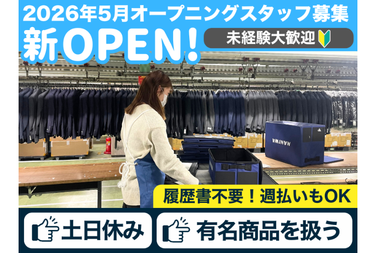 | 職種 | アパレル商品の軽作業スタッフ/オープニングスタッフ |