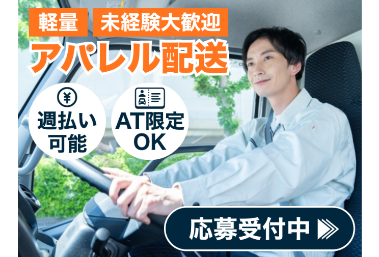| 職種 | 2tトラックドライバー アパレル軽貨物配送 |